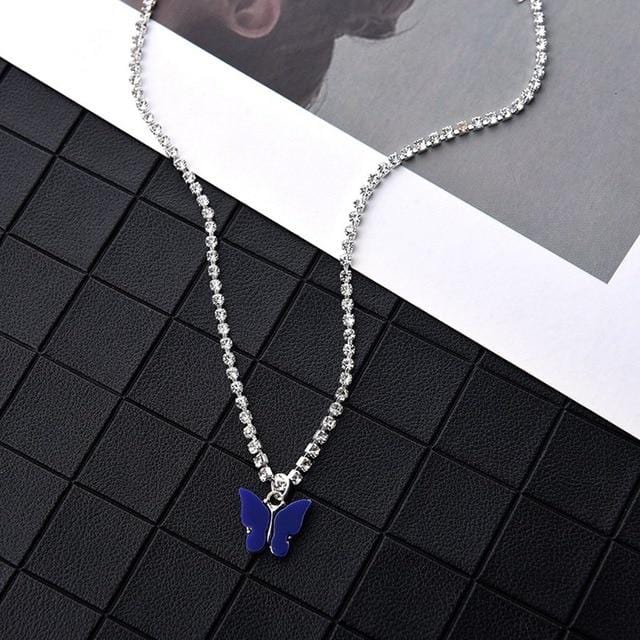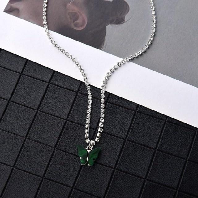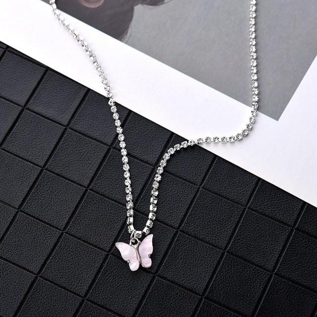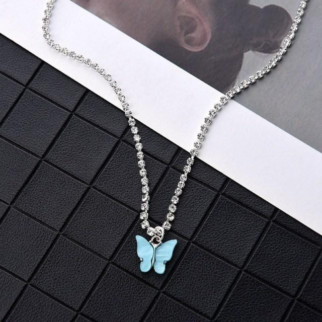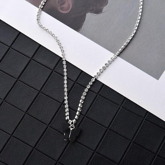 Dazzling Acrylic Butterfly Choker Necklace Rhinestone Chain White Black Color Simple Clavicle Necklace Animal Korean Jewelry
