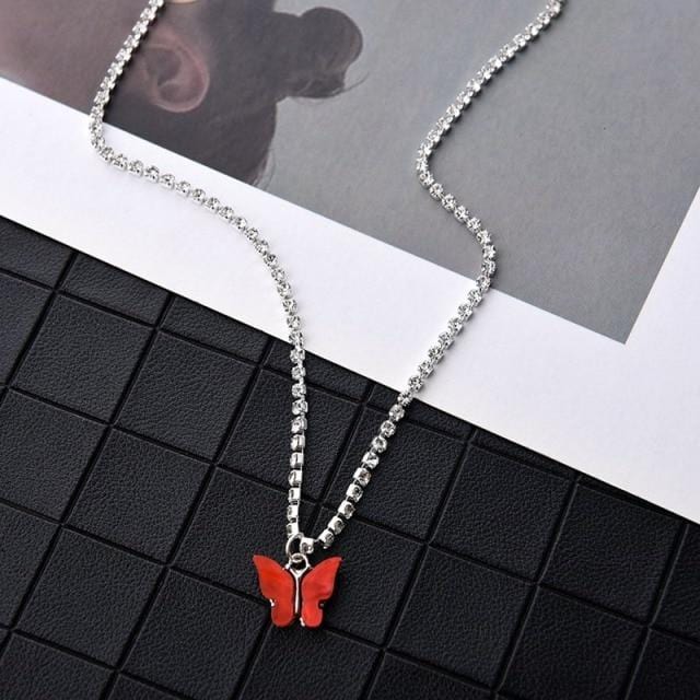 Dazzling Acrylic Butterfly Choker Necklace Rhinestone Chain White Black Color Simple Clavicle Necklace Animal Korean Jewelry