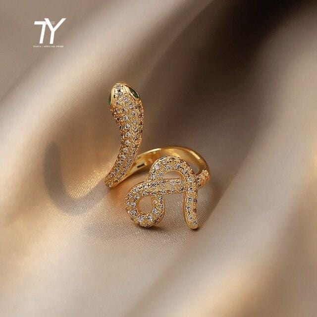 Design Golden Smart Snake Shaped Opening Rings For Woman 2021 South Korea Fashion Jewelry Gothic Girl's Luxury Set Accessories
