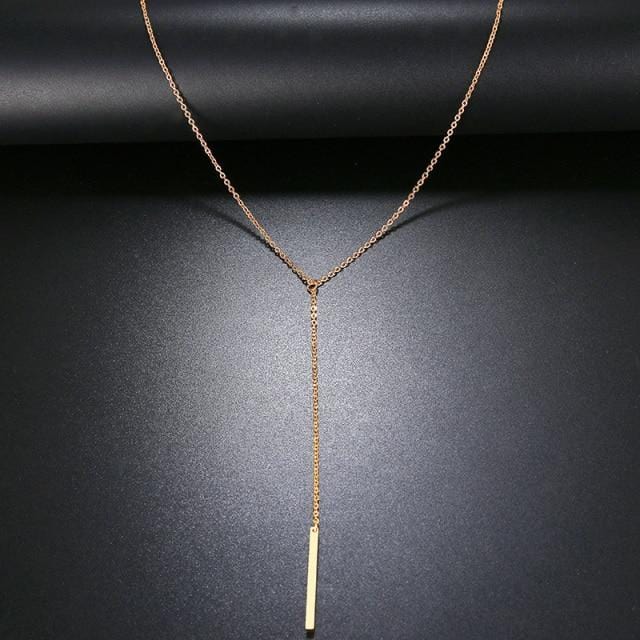 DOTIFI Stainless Steel Necklace For Women Lover's Simple Long Stick Pendant Necklaces Metal Chain Strip Rose Gold Choker