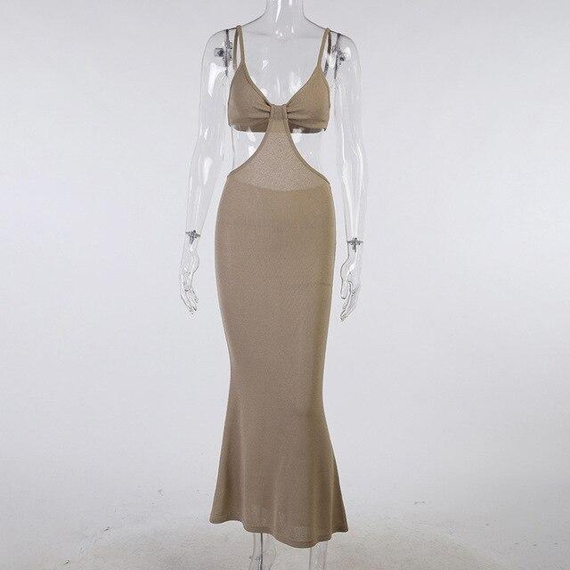 Dulzura Ribbed Knitted Women Strap Midi Dress Hollow Out Bodycon Sexy Streetwear Party Club Festival 2021 Spring Summer Club