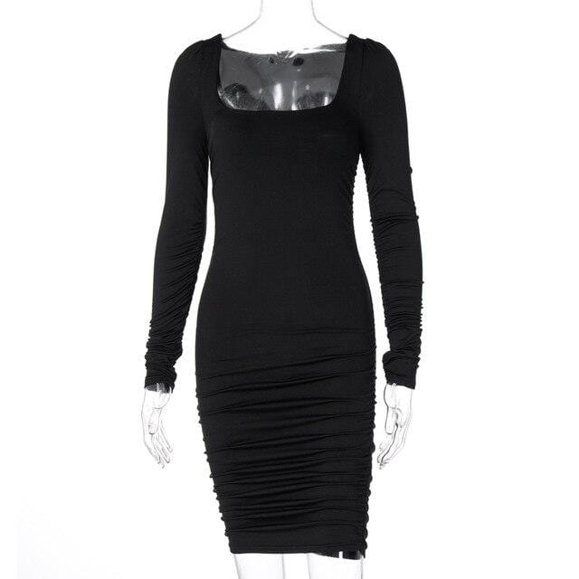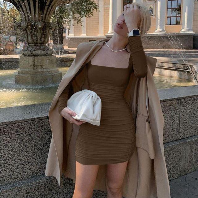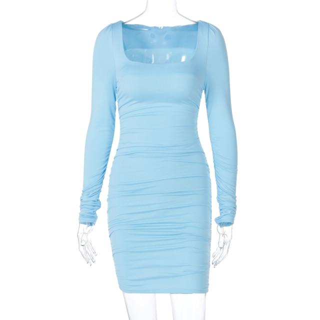 Dulzura Ruched Solid Women Long Sleeve Mini Dress Bodycon Sexy Party Elegant Streetwear 2020 Autumn Winter Club White Clothes
