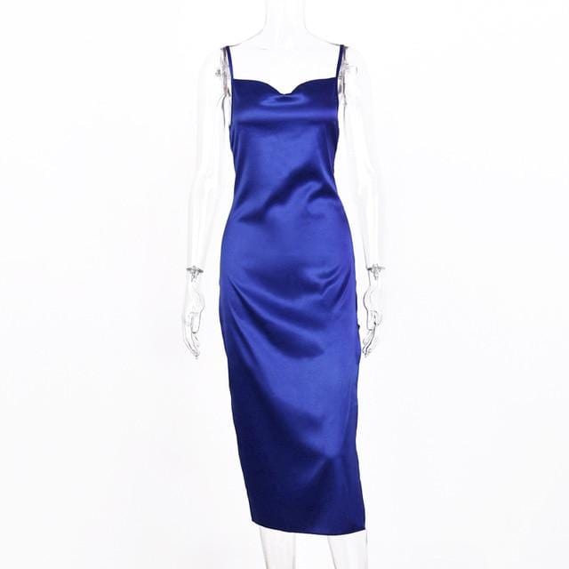 Dulzura satin silk women midi dress strap side slit backless sexy streetwear 2019 autumn winter party clothes elegant dinner