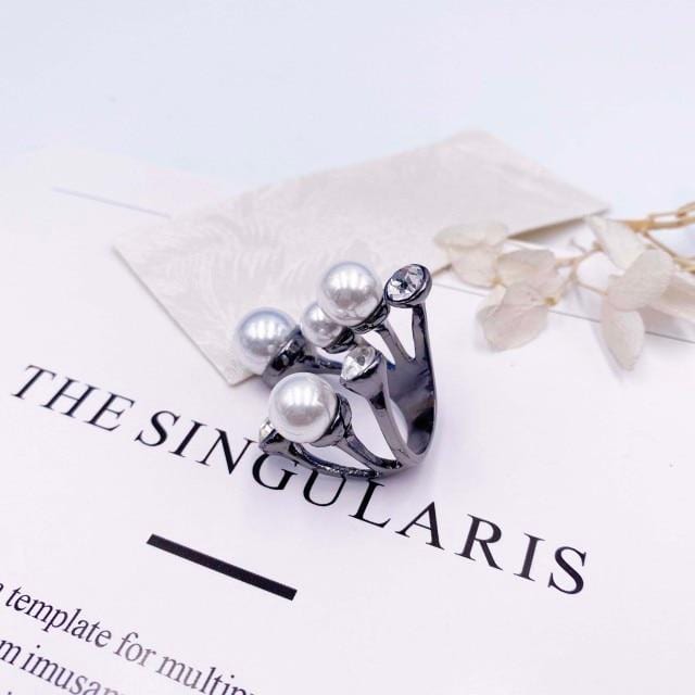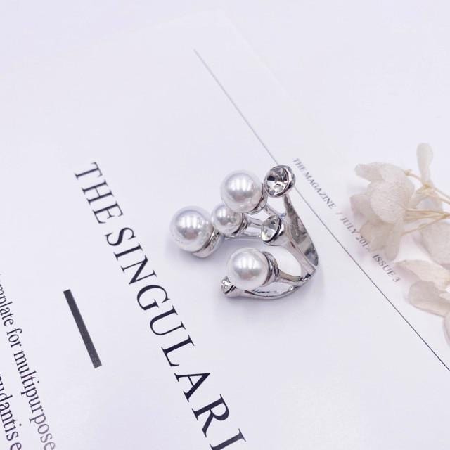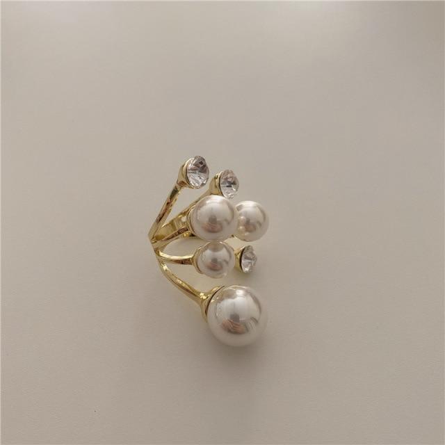 Elegant Retro Oversize Multi Pearl Rings for Women Lady Shiny Crystal Rhinestone Irregular Charm Ring Korean Wedding Jewelry