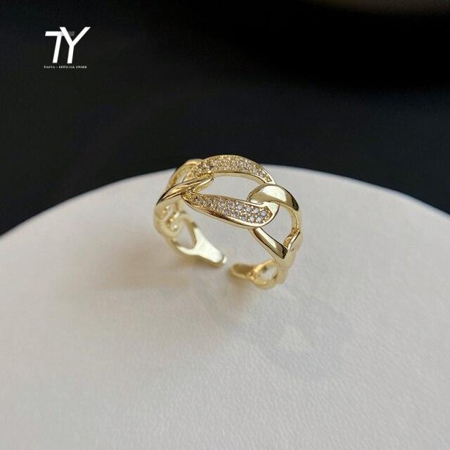 European and American Exaggerated Hollow Chain Shape Gold Open Rings For Woman Gothic Exquisite Jewelry Party Girl's Luxury Ring