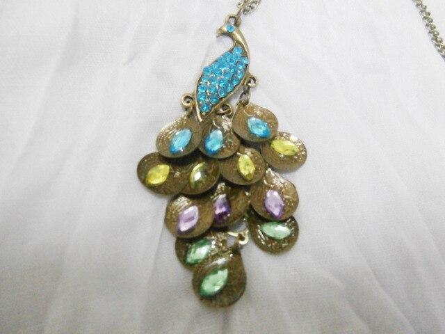 European Blue Gem Peacock Long Chain Necklace Delicate Feather Design Retro Sweater Chain Necklaces & Pendants For Women