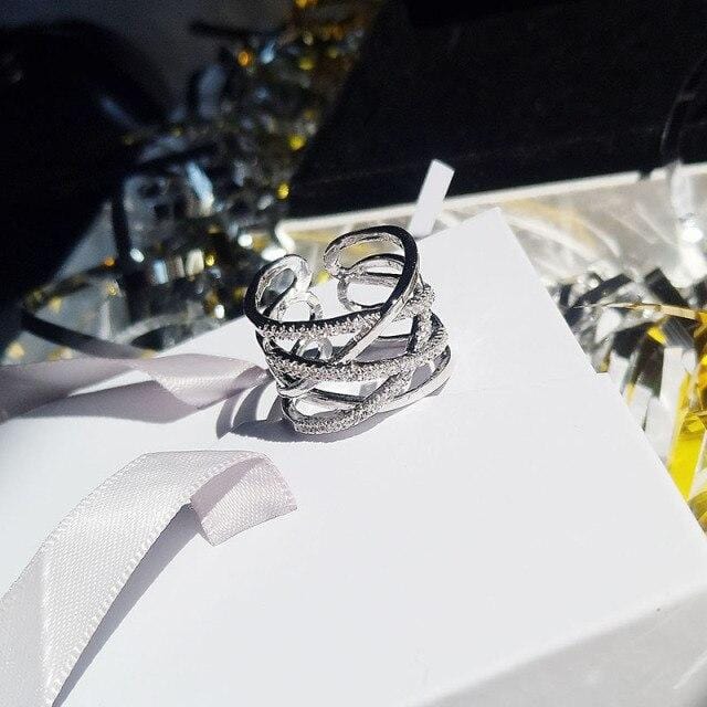 Exaggerated Metal Cross Inlaid Zircon Open rings For Woman 2020 New Fashion Rose Gold Finger Jewelry Wedding Party Luxury Ring