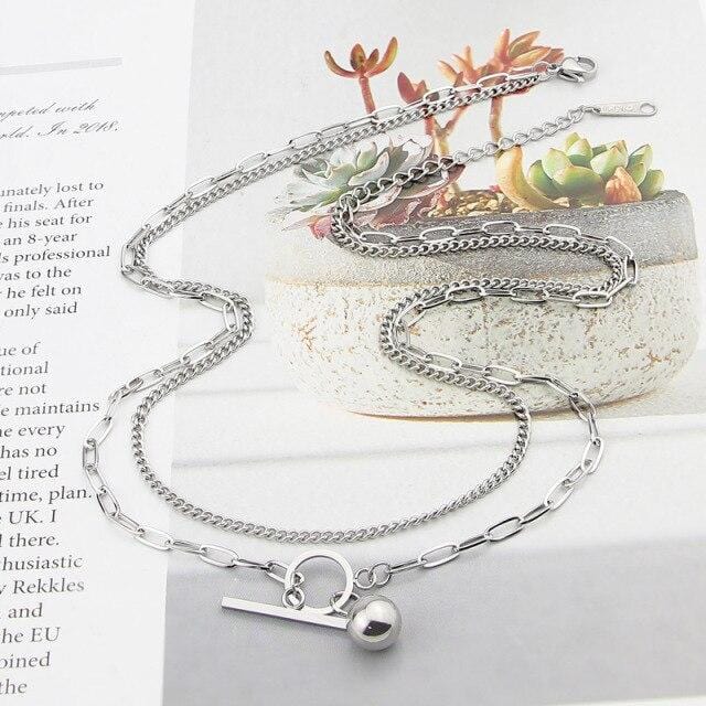 Exquisite Double Chain Ball Shape Pendant Necklace Stainless Steel Gold Color Woman Necklace Couple Female Jewelry Girl Gift