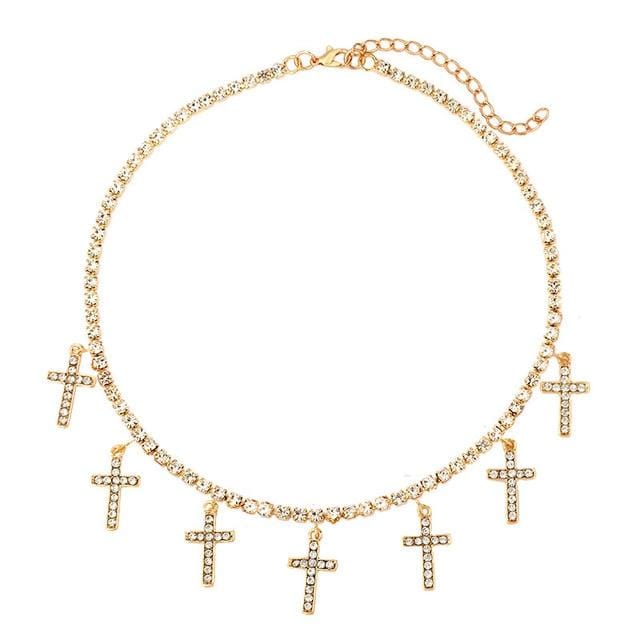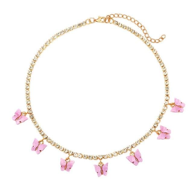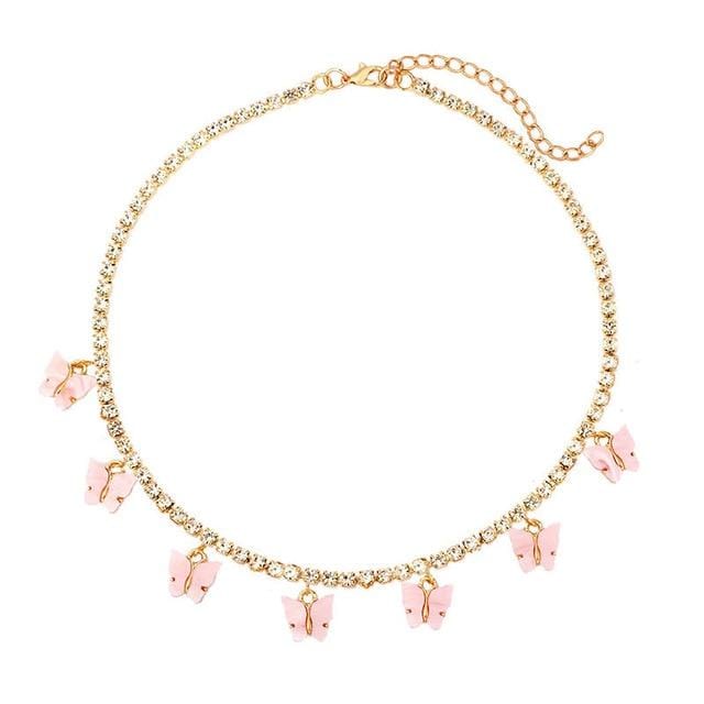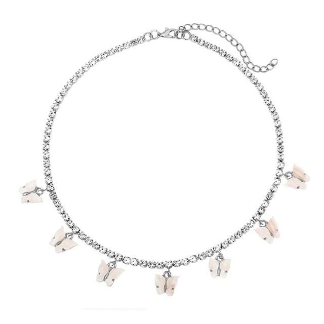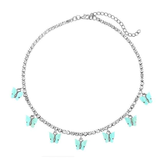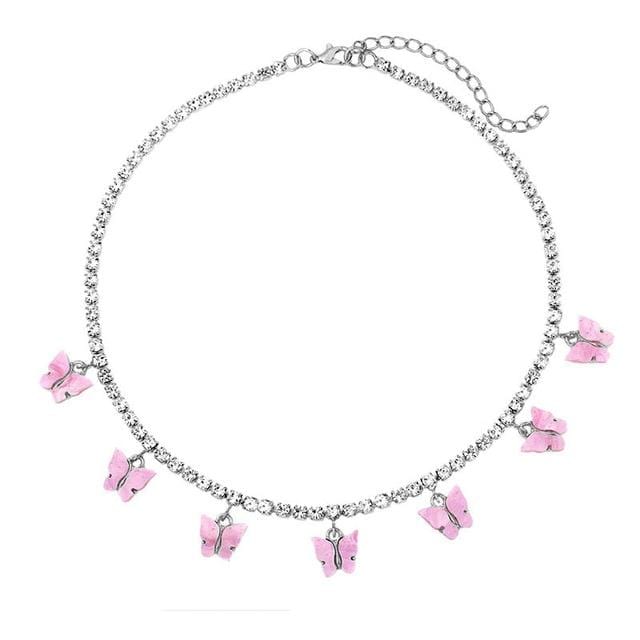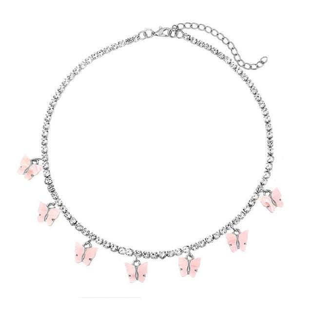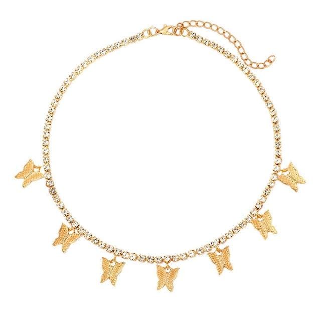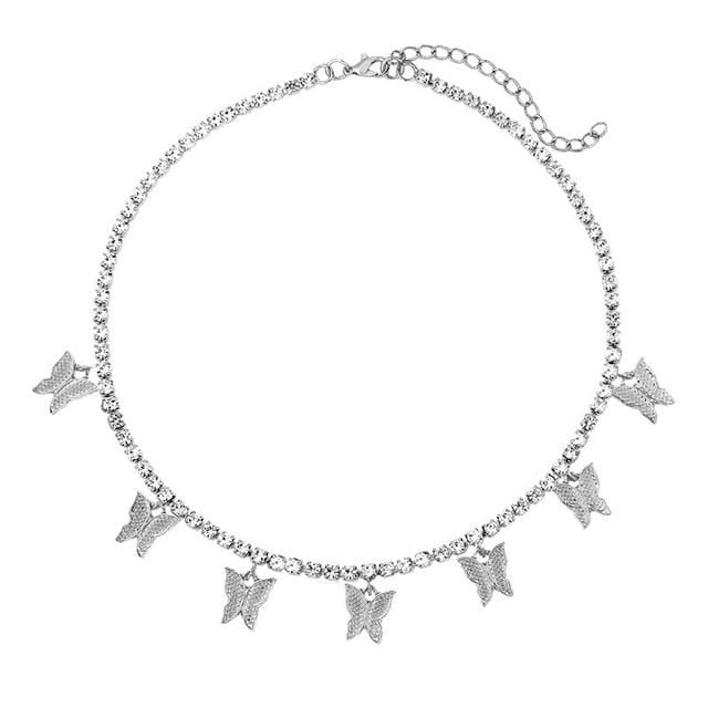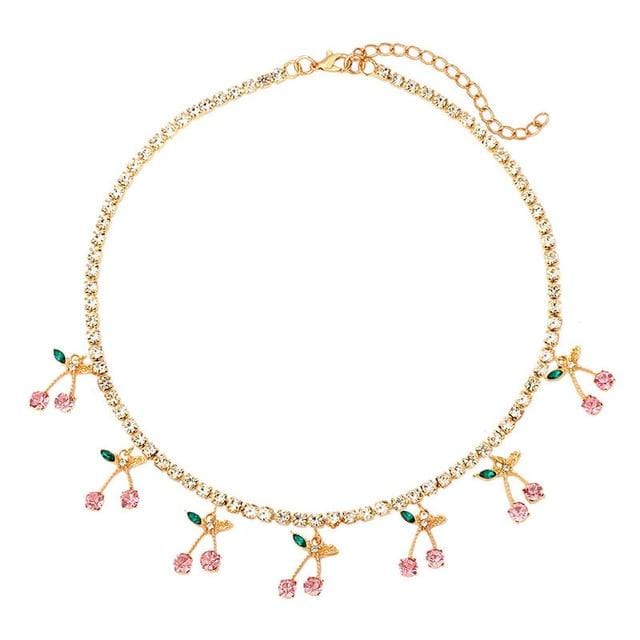 Fashion Bling Crystal Tennis Chain Choker Necklace for Women Gold Silver Color 7 Butterfly Cherry Pendant Necklace Party Jewelry
