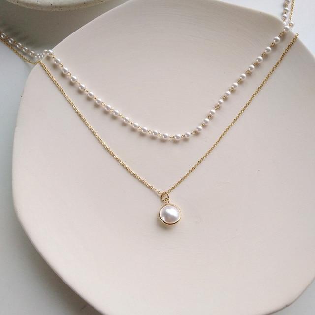 Fashion Chain Pearl Necklace For Women Baroque Pearl Metal Charm Pendants Necklaces Choker Bead Chain Jewelry Gifts