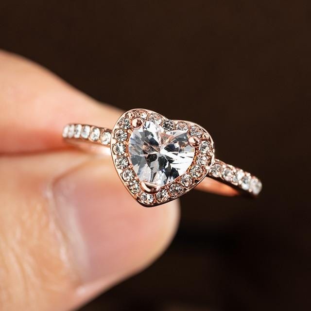 Fashion Crystal Heart Shaped Wedding Rings For Women Rose Gold Ladies Engagement Rings Jewelry Party Gifts Accessories