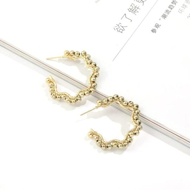 Fashion Geometric Circle C-shaped Beads Drop Earrings for Women Thick Small Gold Hoops Statement Female Bijoux 2020 New