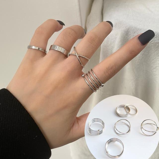 Fashion Jewelry Rings Set Hot Selling Metal Alloy Hollow Round Opening Women Finger Ring For Girl Lady Party Wedding Gifts