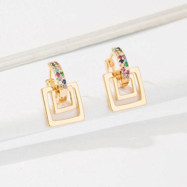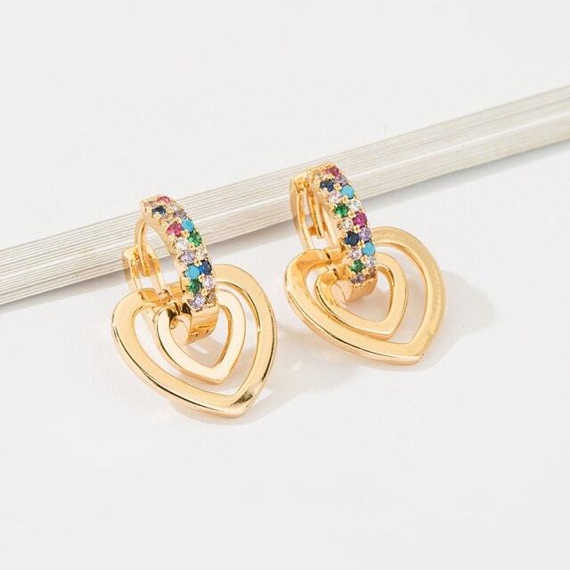 Fashion Simple Gold Geometric Heart Drop Dangle Earrings Female CZ Rainbow Huggie Earrings Statement Party Zircon Jewelry
