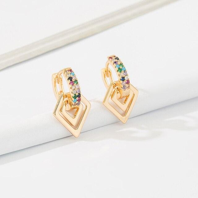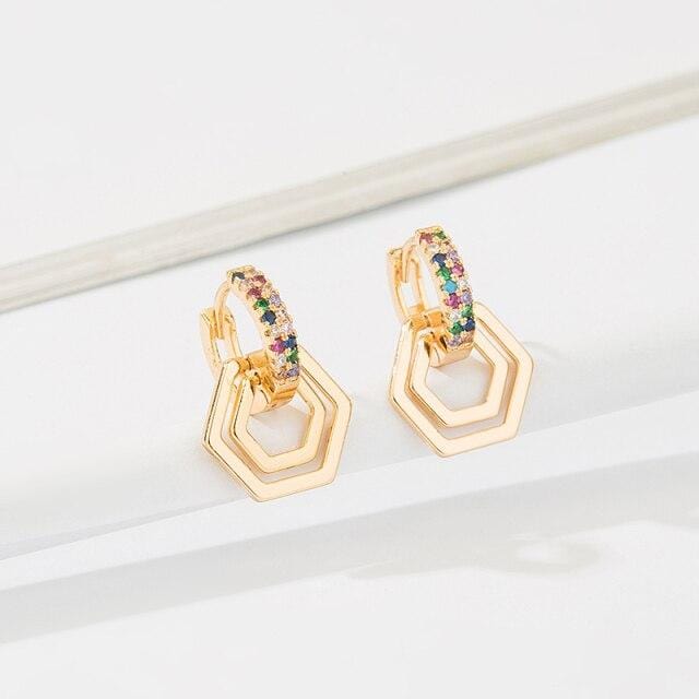 CZ Rainbow Jewelry: Geometric Gold Earrings