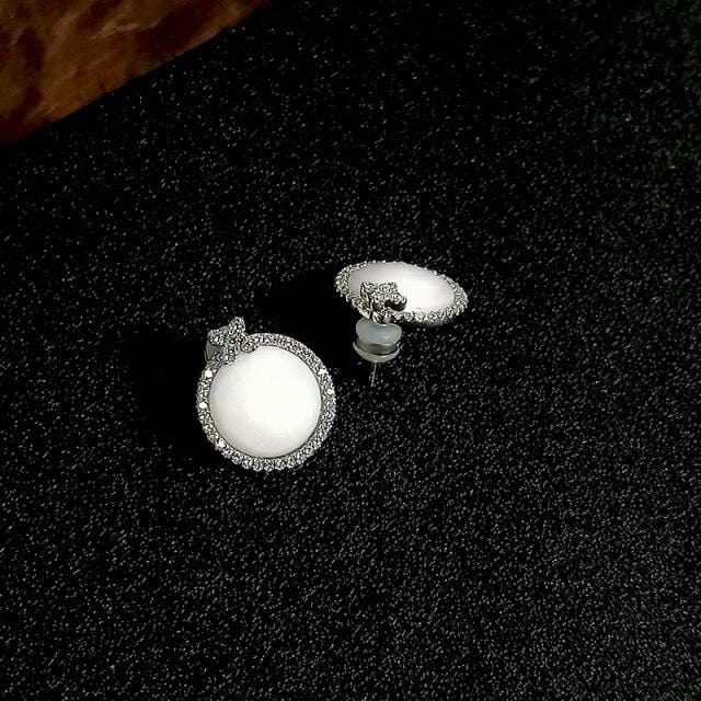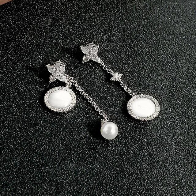 Fashion women cute s925 sterling silver white mother-of-pearl with natural pearl earrings luxury brand monaco jewelry gift