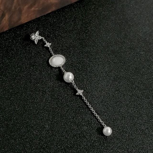 Fashion women cute s925 sterling silver white mother-of-pearl with natural pearl long tassel earrings monaco jewelry gift