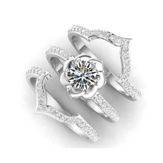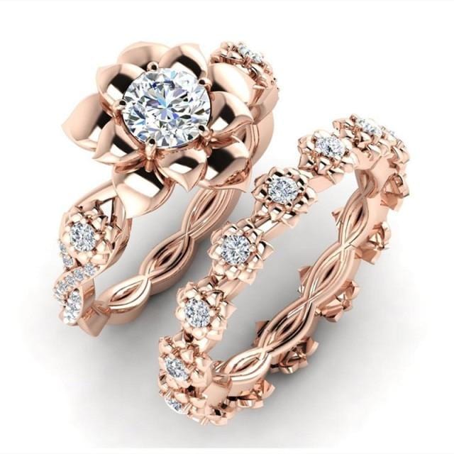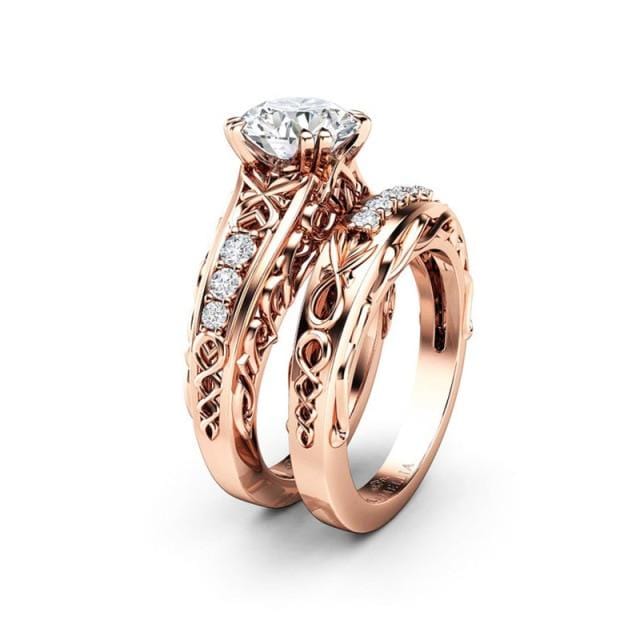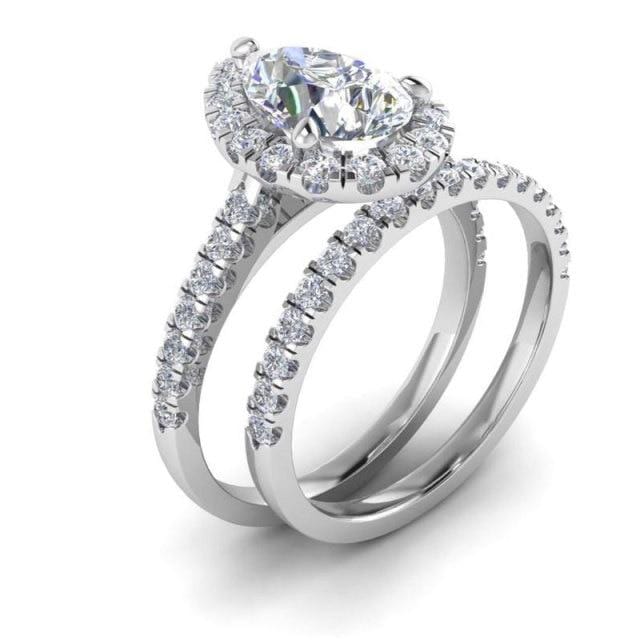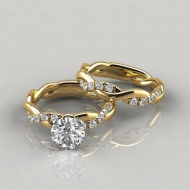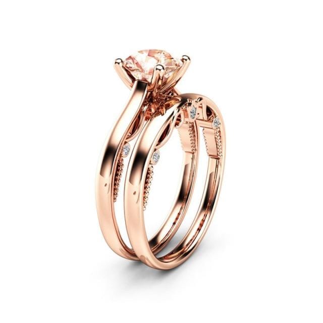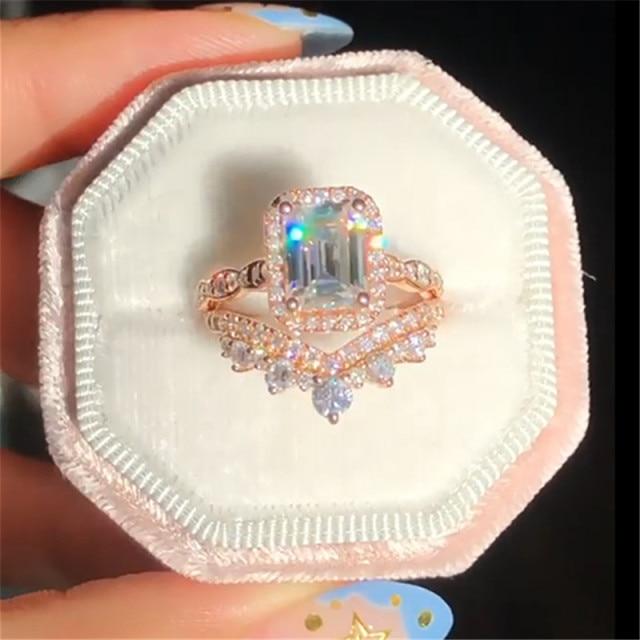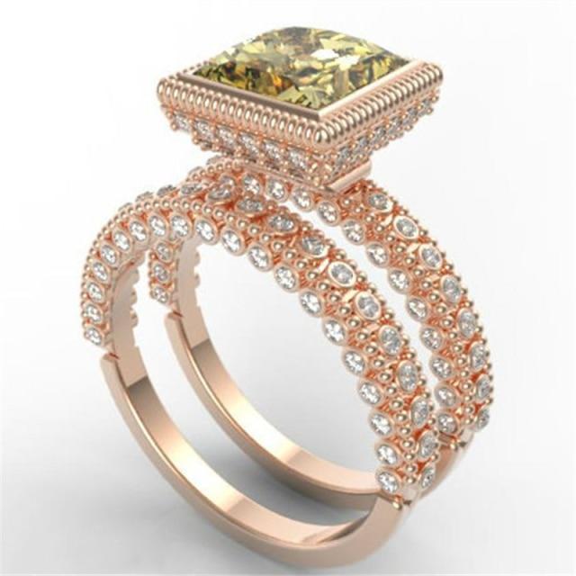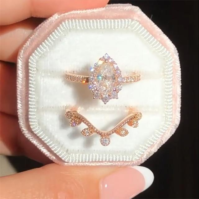 FDLK 2pcs / set Vintage Oval Cut Natural Crystal Engagement Ring Set Anniversary Gift Women Wedding Banquet Party Jewelry Ring