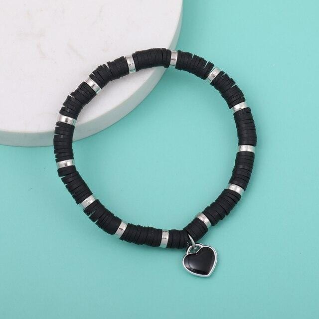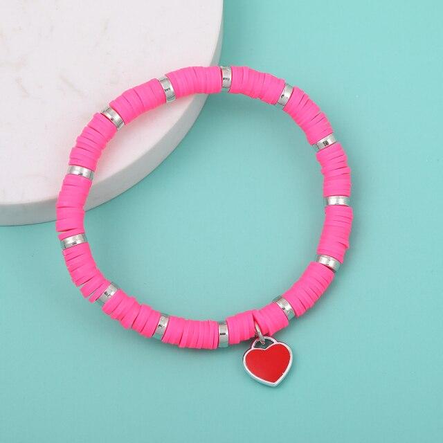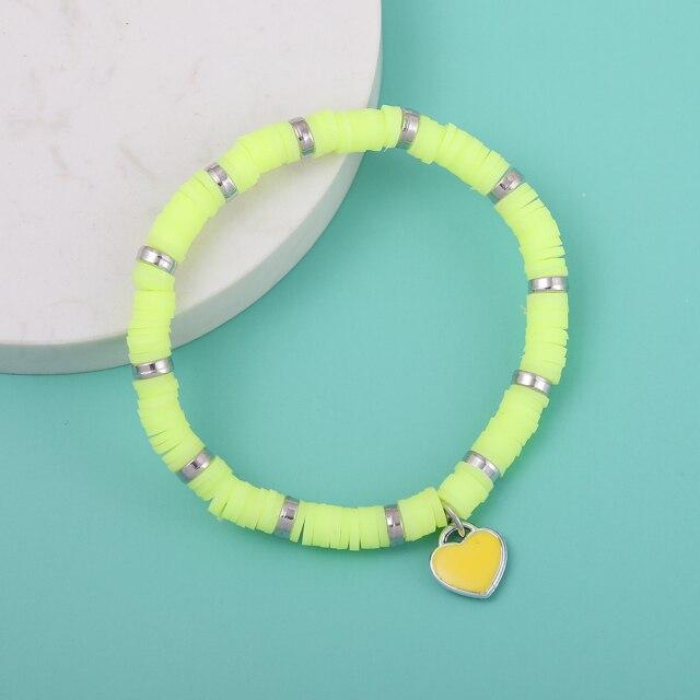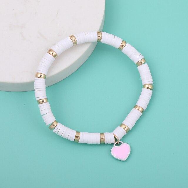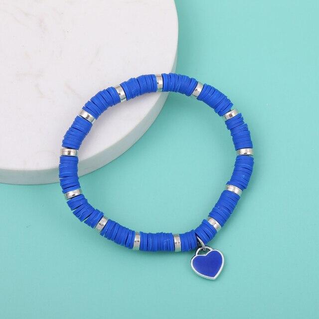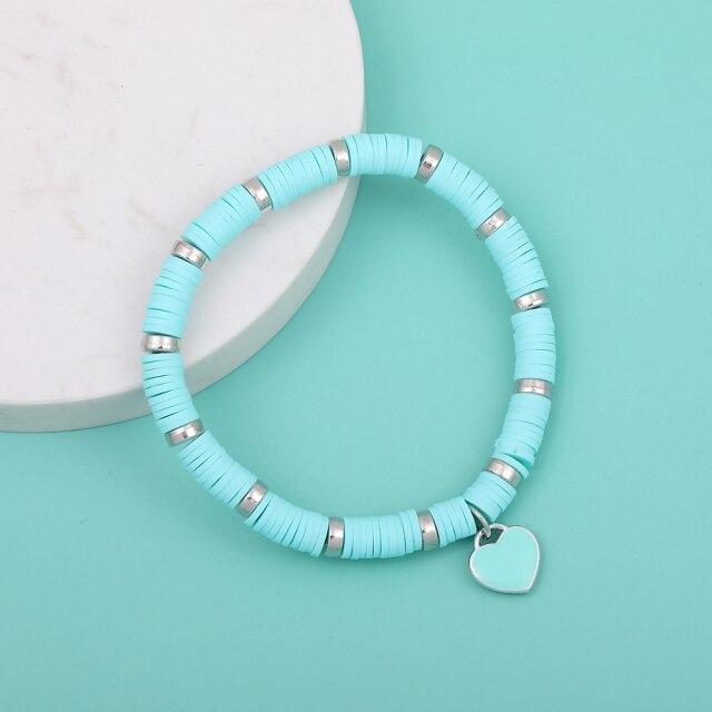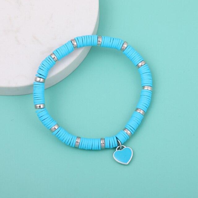Female Bracelets 2020 New Fashion Beads Discs Polymer Clay Bracelets Boho Heart Elastic Rope Bracelet for Women Beach Jewelry