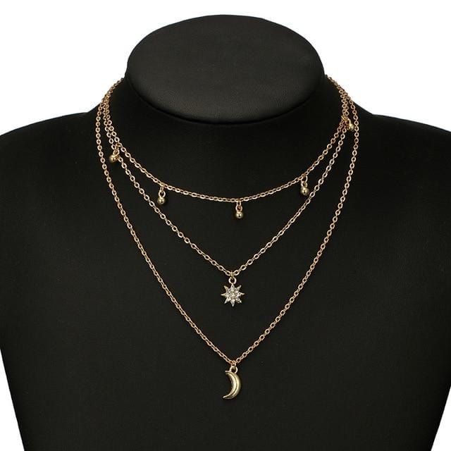 Female Necklace Multi Layered Moon Women Necklace Choker Statement Crystal Gold Color Necklace Girl Party Wear Gift Jewelry