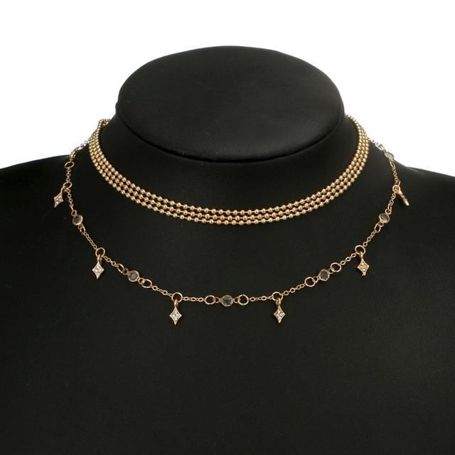 Female Necklace Multi Layered Moon Women Necklace Choker Statement Crystal Gold Color Necklace Girl Party Wear Gift Jewelry