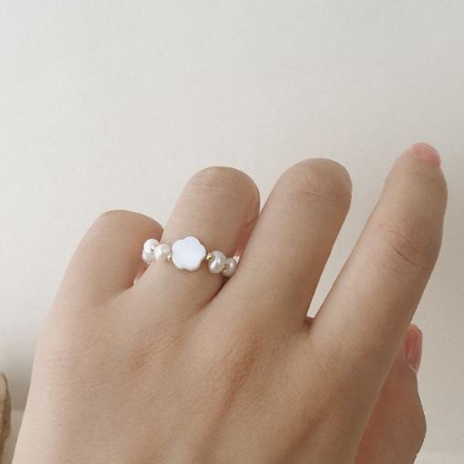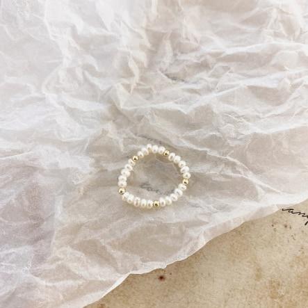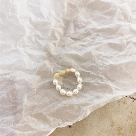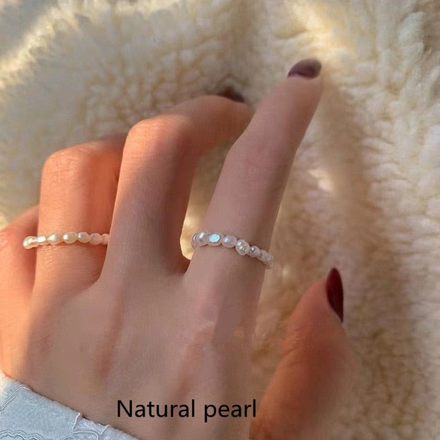 FFLACELL High Quality Natural Freshwater Pearl Multi-Beaded Ring Finger Jewelry Continuous Circle Minimalist Ring Party Jewelry
