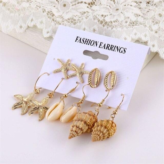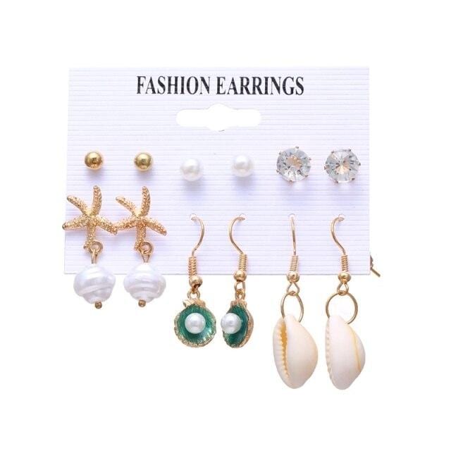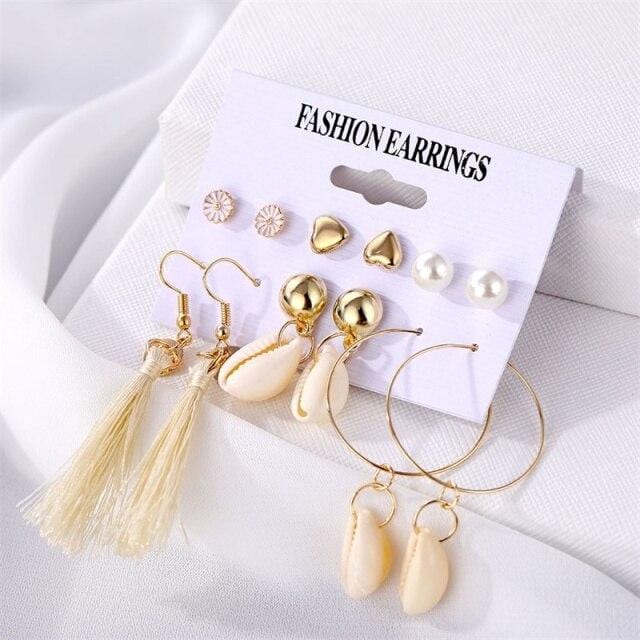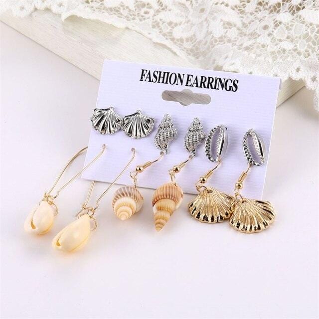 FNIO 2020 New Women Shell Earrings Set For Girls Gold Silver Color Drop Earring Brincos Bohemian Beach Fashion Jewelry Wholesale