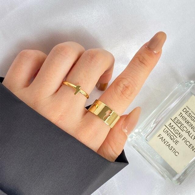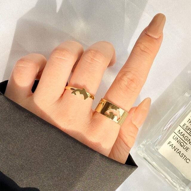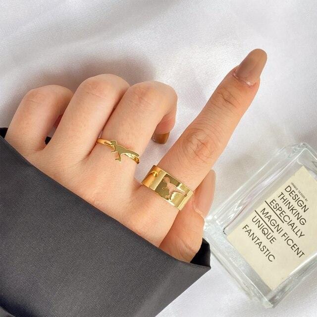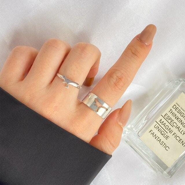 FNIO 2021 Airplane Couple Ring for Women Men Pilot & Flight Butterfly Dinosaur Shark Ring Wedding Set Aviation Lover Gift