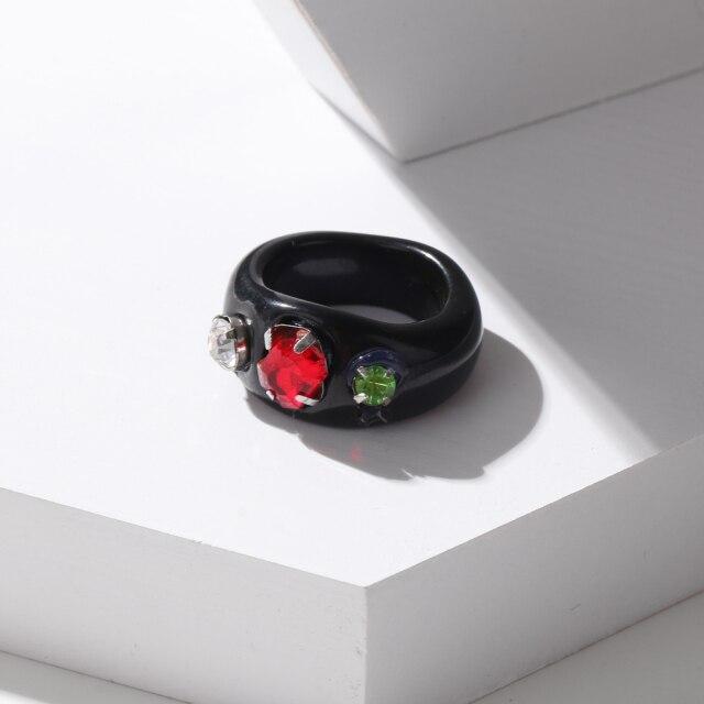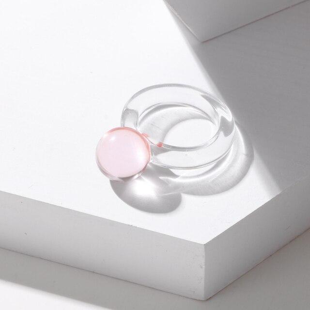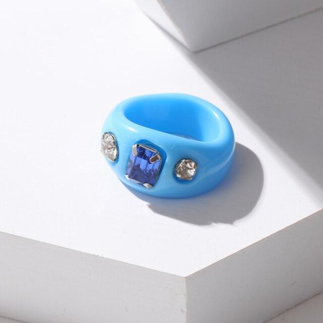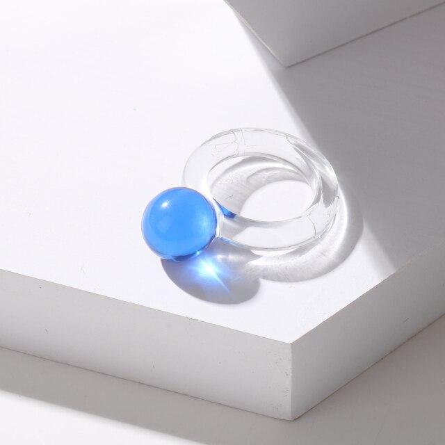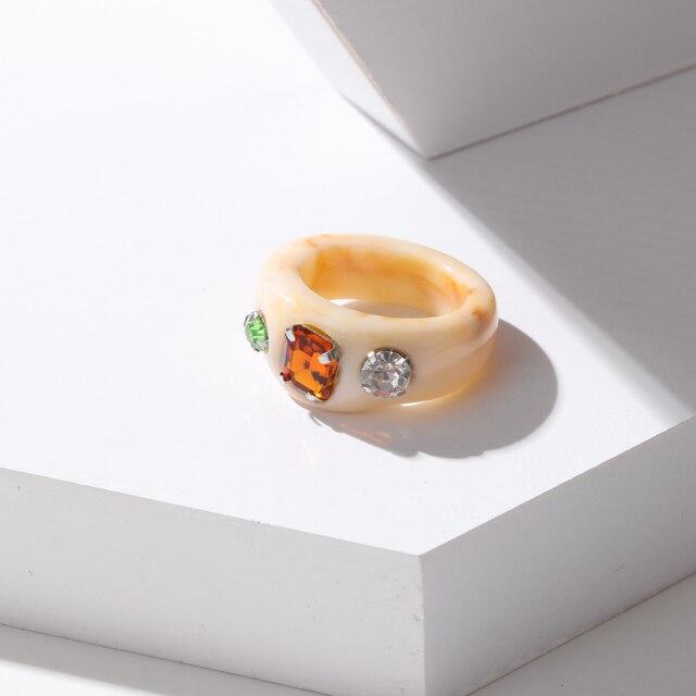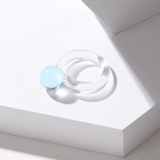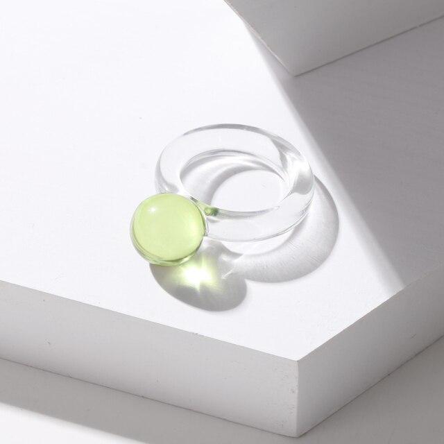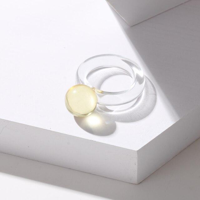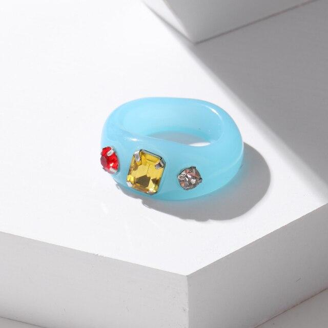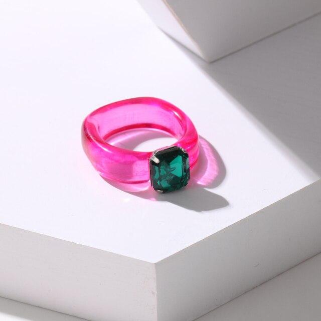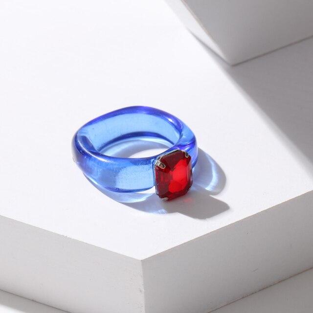 FNIO 2021 Transparent Resin Acrylic Rhinestone Colourful Geometric Square Round Rings Set for Women Jewelry Party Gifts