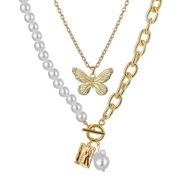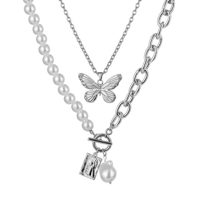 FNIO Punk Butterfly Choker Necklace Collar Statement Hip Hop Chunky Gold Silver Color Thick Chain Necklace Women Jewelry