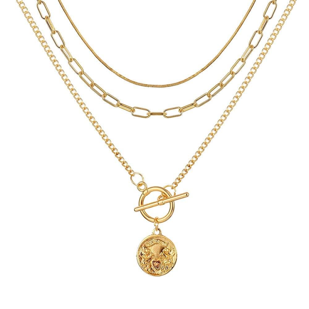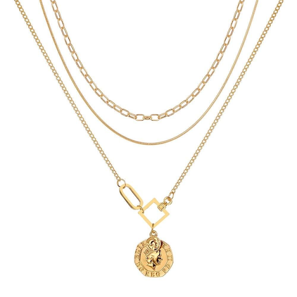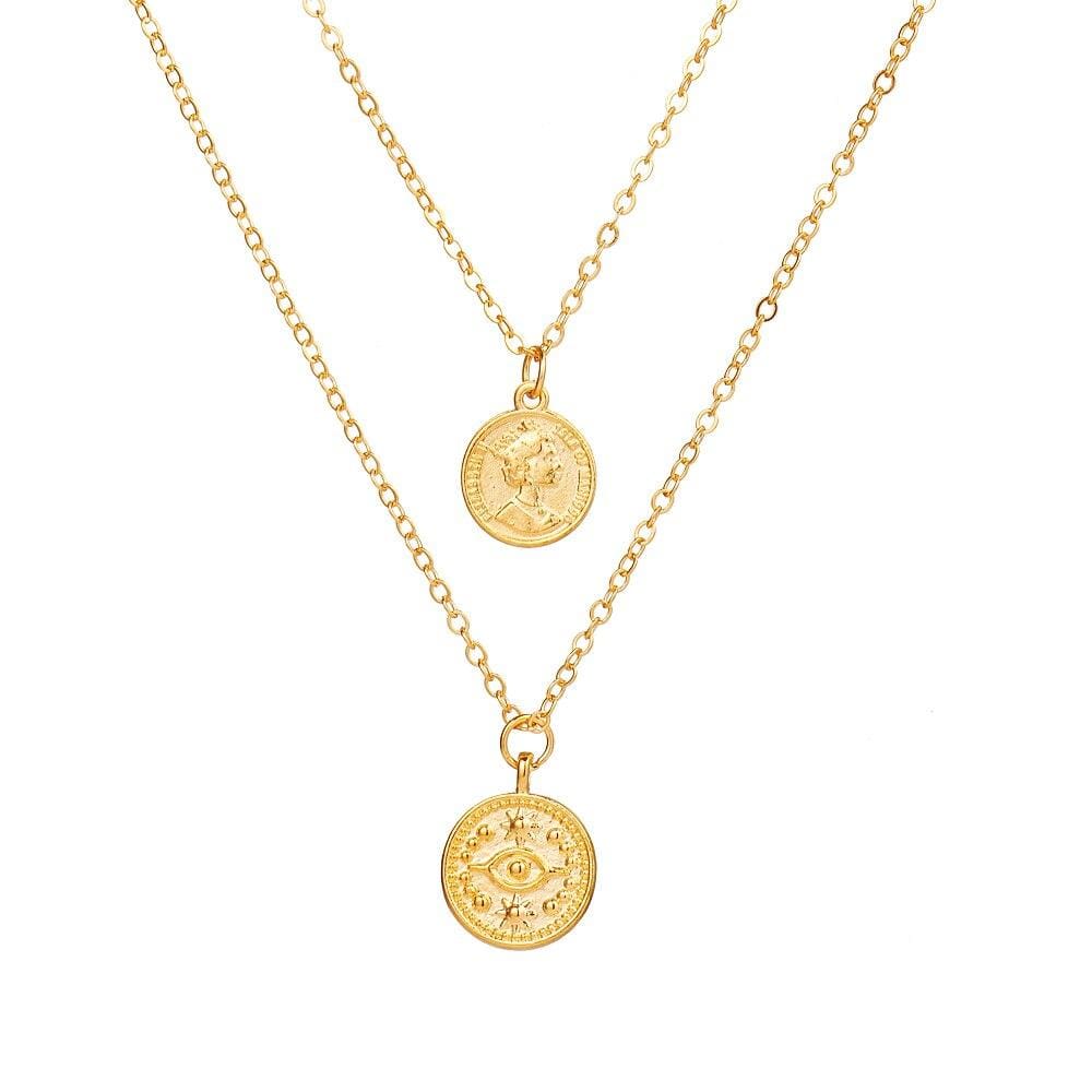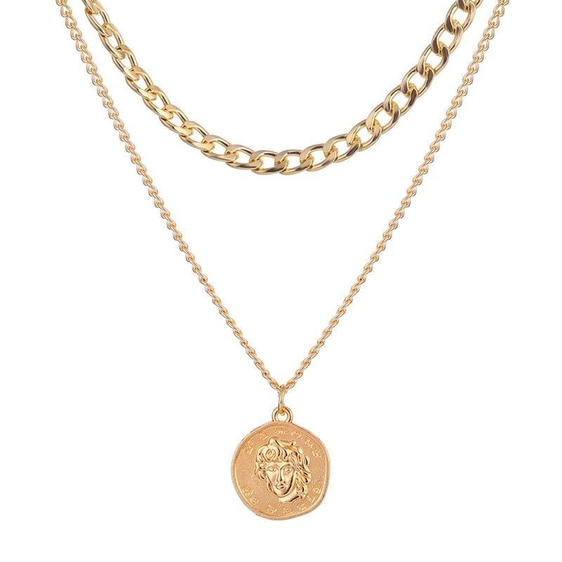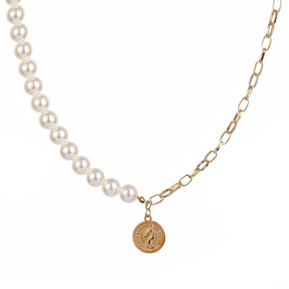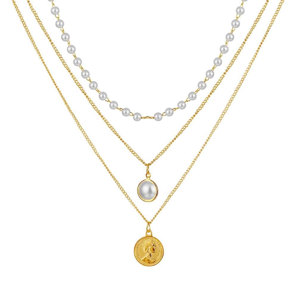 FNIO Punk Coin Chain Necklace for Women Pearl Bead Choker Gothic Multilayer Pendant Necklaces Jewelry Party