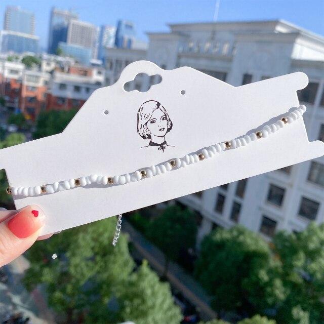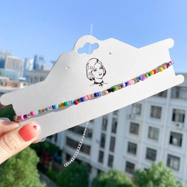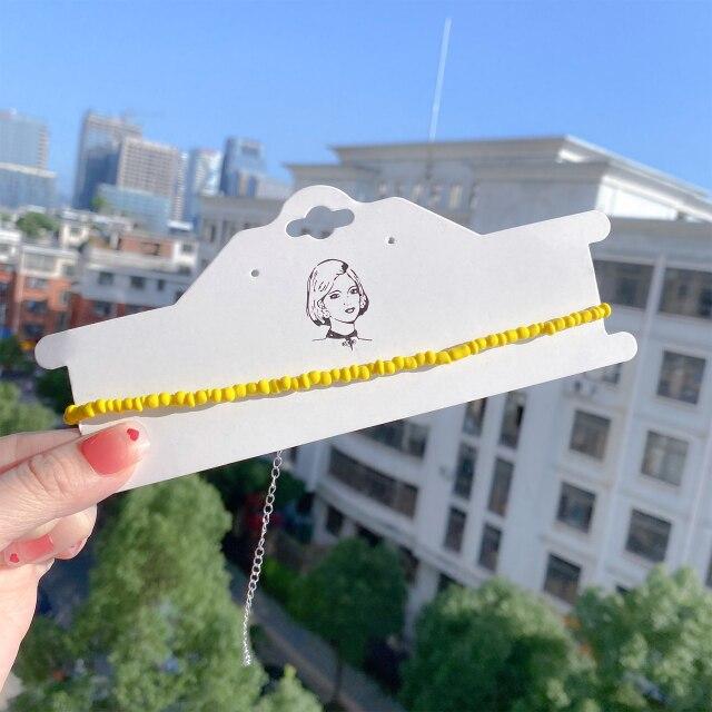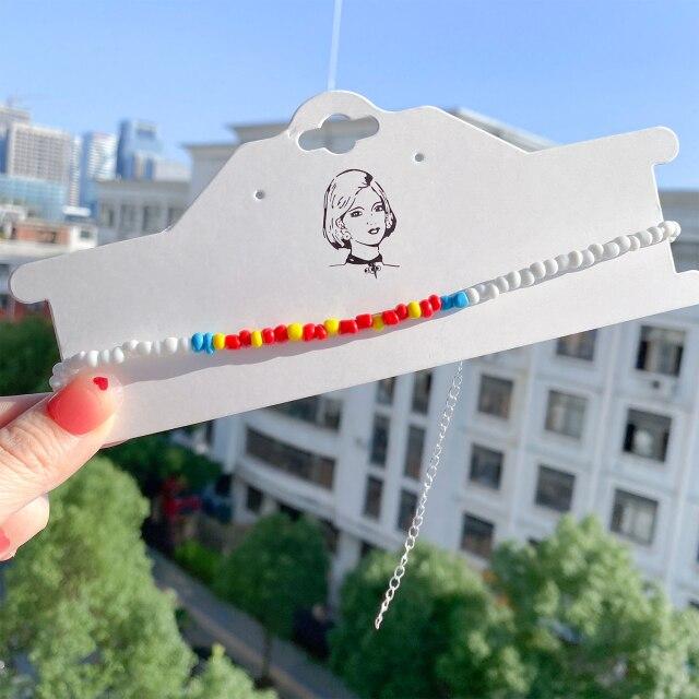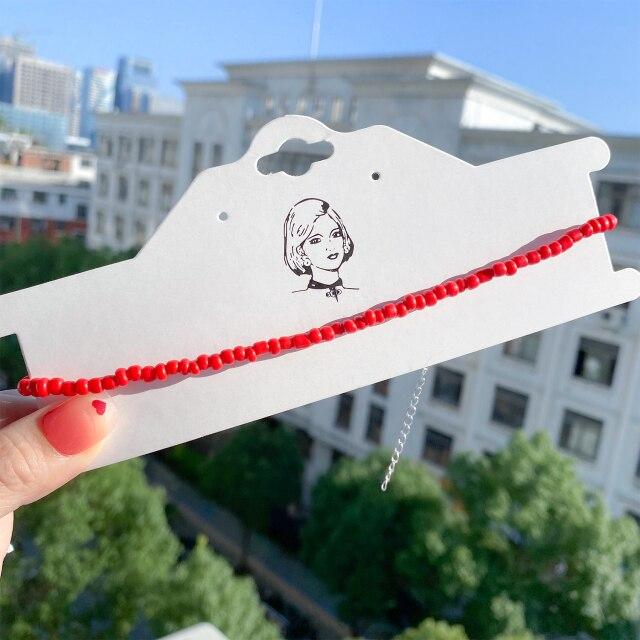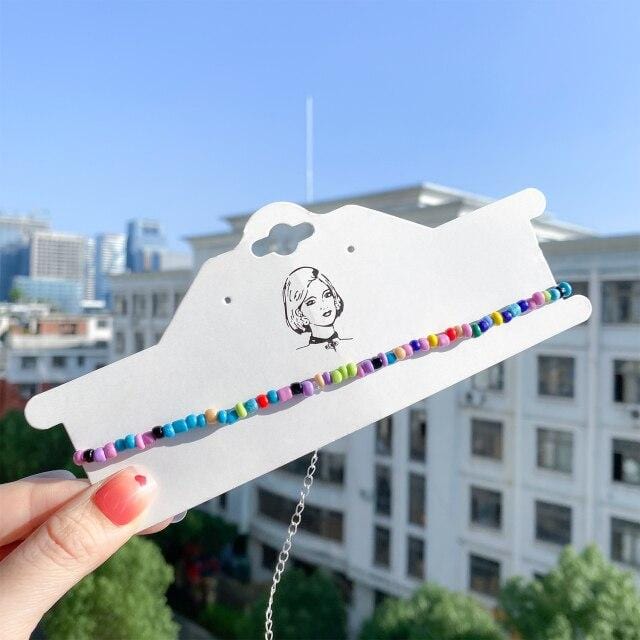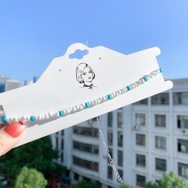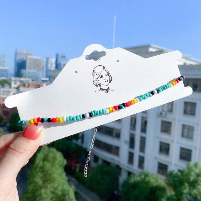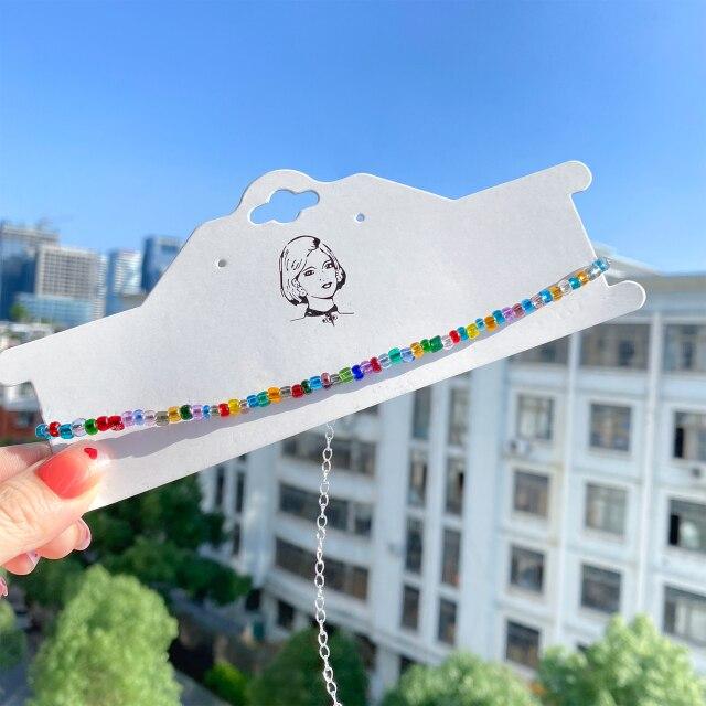 FNIO Simple Seed Beads Strand Necklace Women String Beaded Short Choker Necklace Jewelry Chokers Necklace Gift 1pc