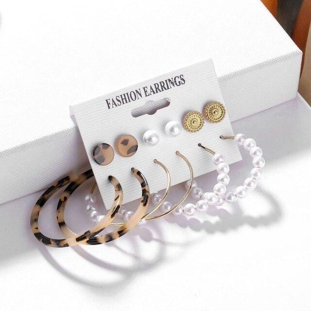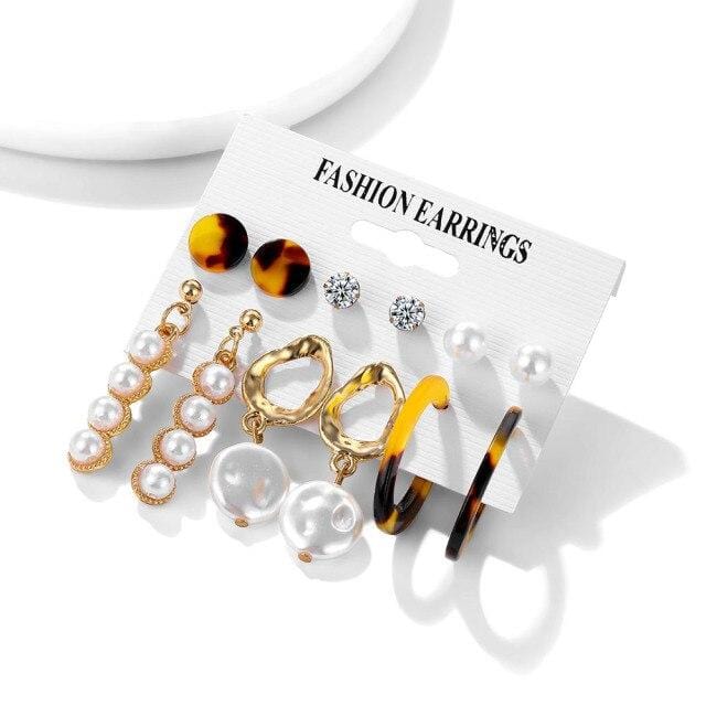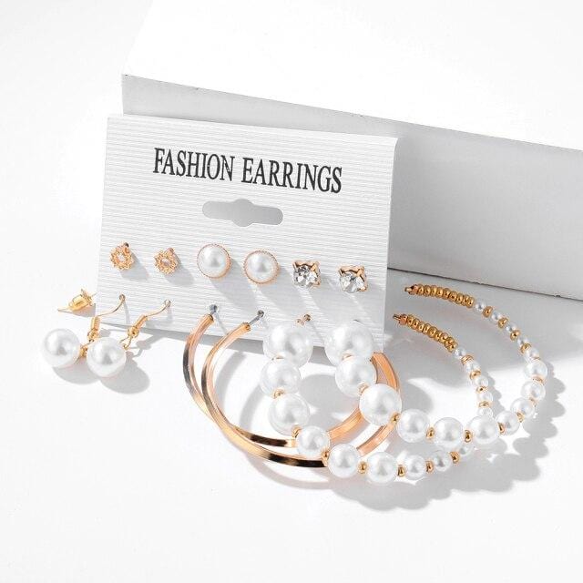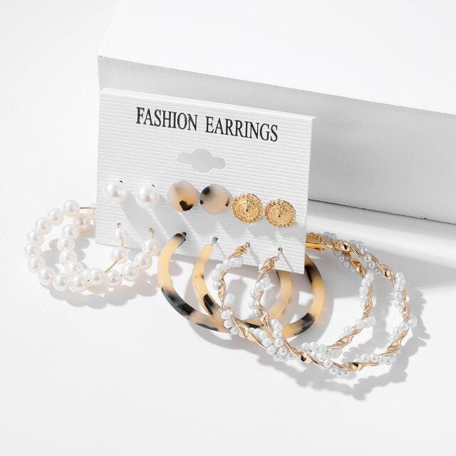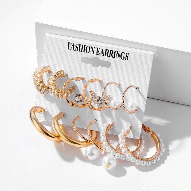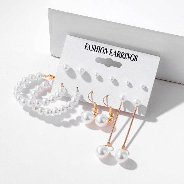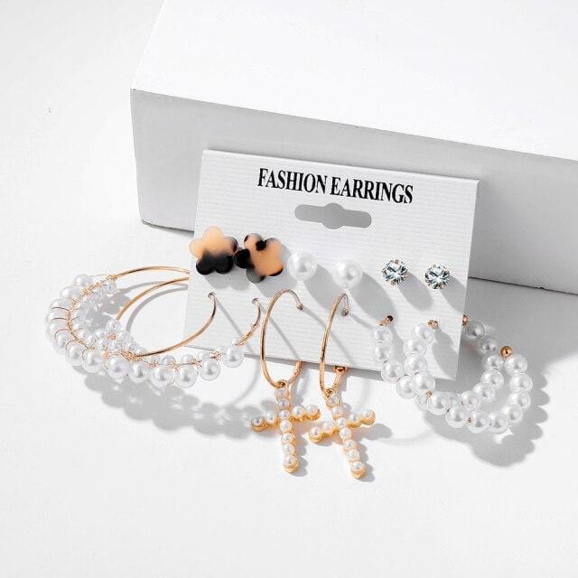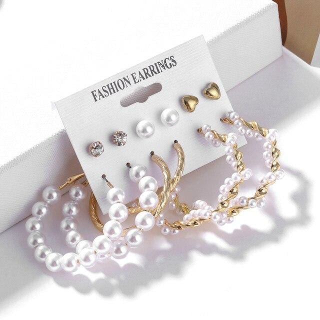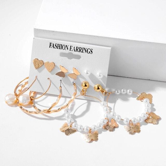 FNIO Trendy Pearl Hoop Earrings for Women Fashion Gold Geometirc Circle Butterfly Earrings Brincos Gift Wedding Jewelry