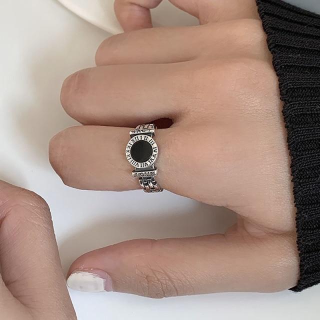 Foxanry New Trends 925 Sterling Silver Finger Rings Engagement Jewelry for Women Creative Black Circle Party Accessories Gifts