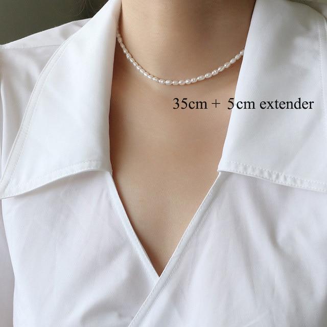 GHIDBK Dainty Bohemian Natural Freshwater Seed Pearls Alphabet A-Z Pendant Choker Collars Necklaces Stainless Steel Jewelry