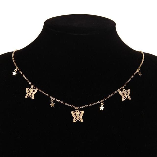Gold Chain Butterfly Pendant Choker Necklace Women Statement Collares Bohemian Beach Jewelry Gift Collier Cheap