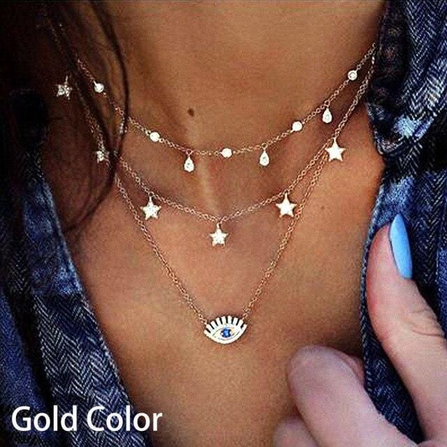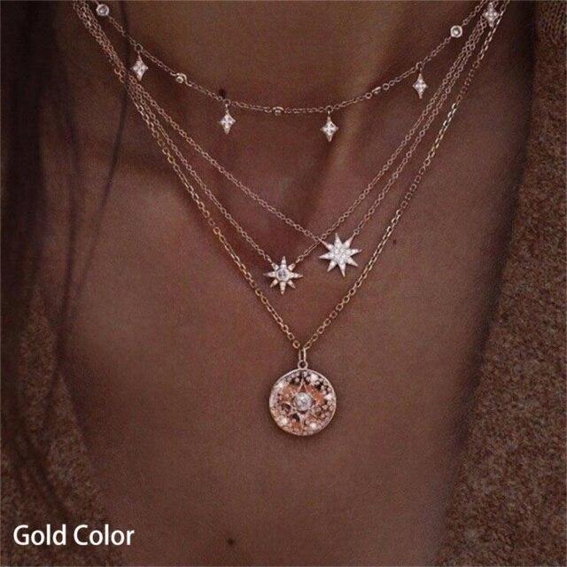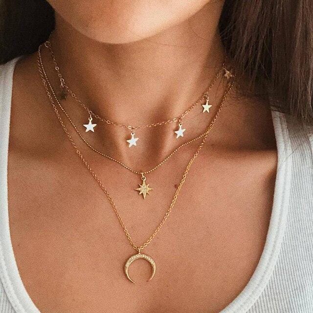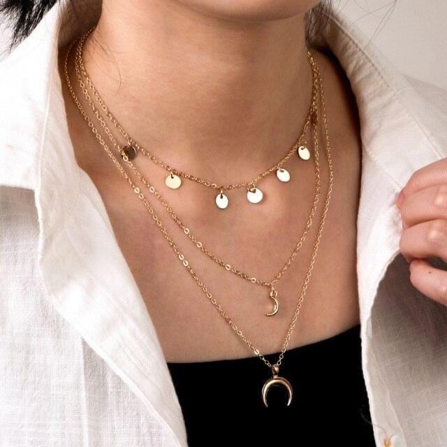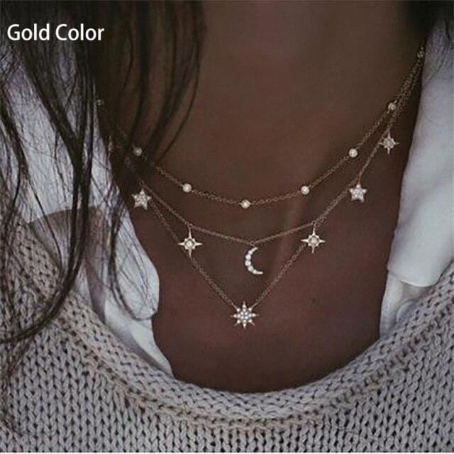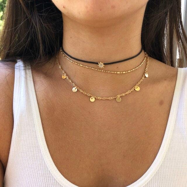 Gold color Choker Necklace for women Long moon Tassel Pendant Chain Necklaces & Pendants Laces velvet chokers Fashion Jewelry