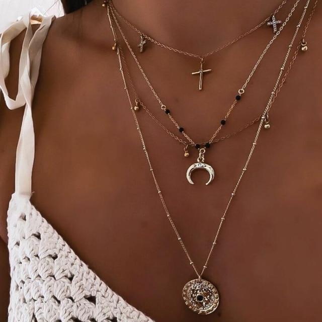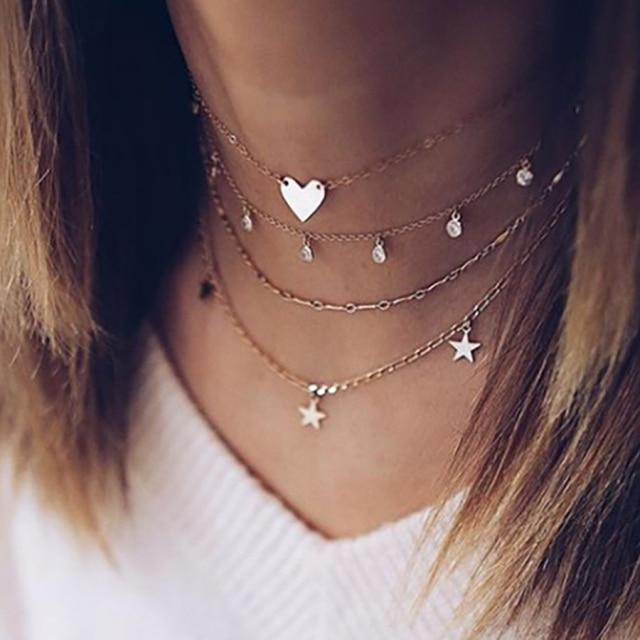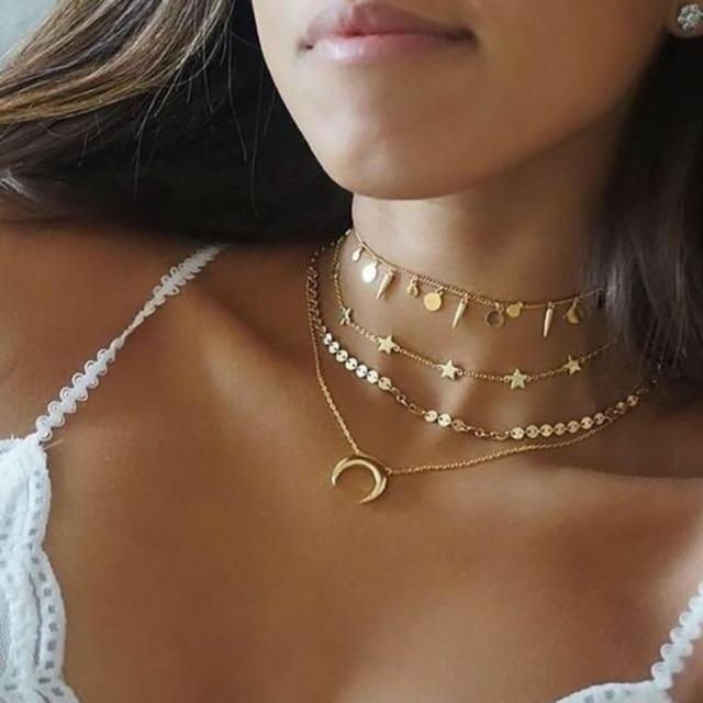 Gold color Choker Necklace for women map bee moon Tassel Pendant Chain Necklaces & Pendants Laces velvet chokers Fashion Jewelry
