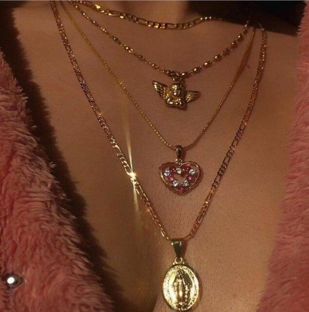 Gold color Choker Necklace for women map bee moon Tassel Pendant Chain Necklaces & Pendants Laces velvet chokers Fashion Jewelry