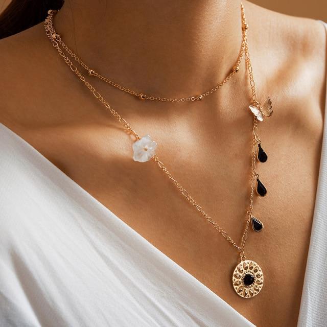 Gold color Choker Necklace for women moon star Tassel Pendant Chain Necklaces & Pendants Laces velvet chokers Fashion Jewelry