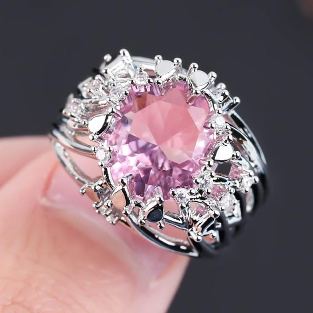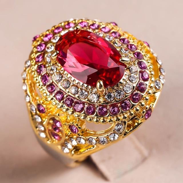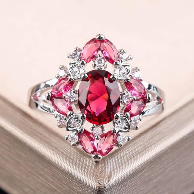 Gorgeous Large Oval Red Stone Ring Luxury Filled CZ Weddings Rings For Women Engagement Fashion Jewelry Gifts Anillos Mujer