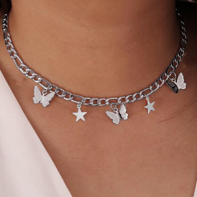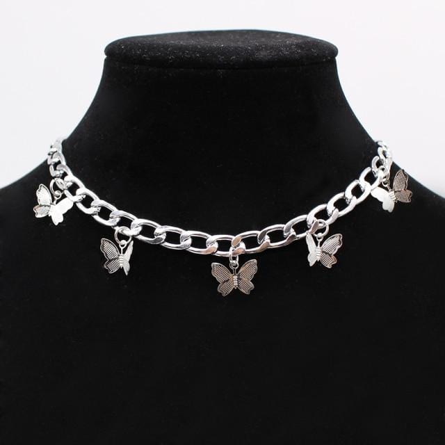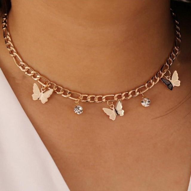 Goth Butterfly Neck Pendants Women's Choker Gold Color Necklace On The Neck Chain Chocker Punk Jewelry 2021 Kpop Collar For Girl