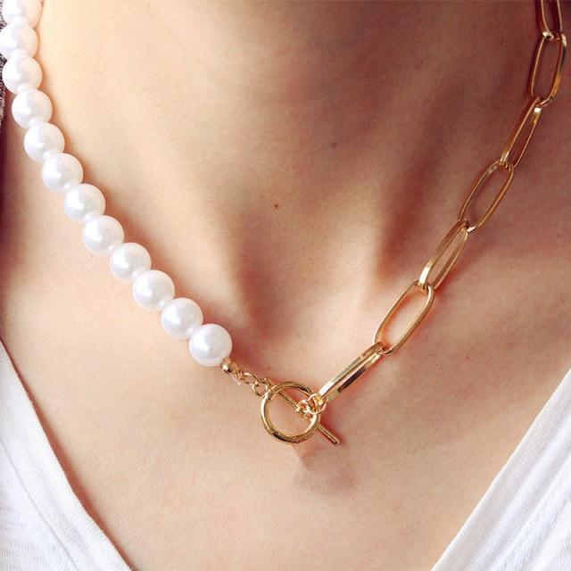 Goth Pearl Choker Necklace Gold Color Lasso Pendants Women Jewelry On The Neck Chain Beads Necklace Chocker Collar For Girl Kpop