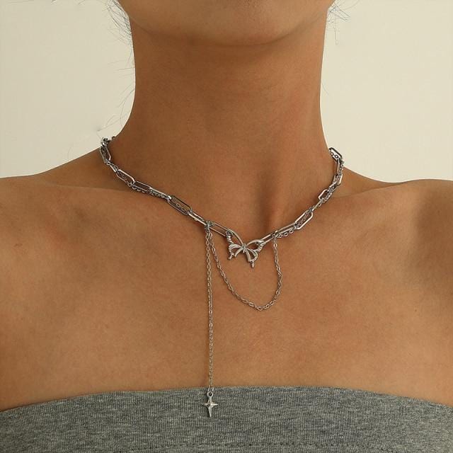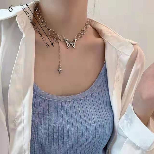 Gothic Butterfly Pendant Necklace for Women Choker Aesthetic Grunge Chain accessories IGIRL Indie Collar Jewelry Friends Gift