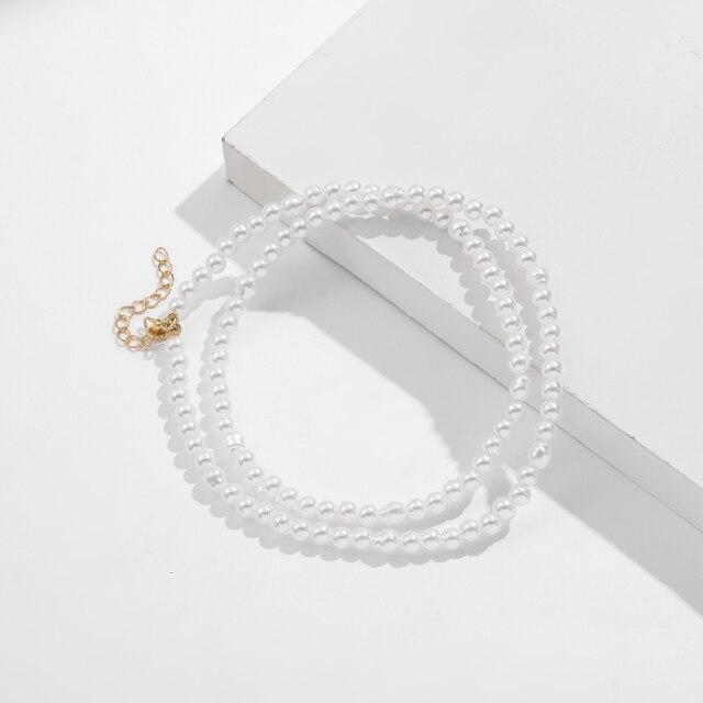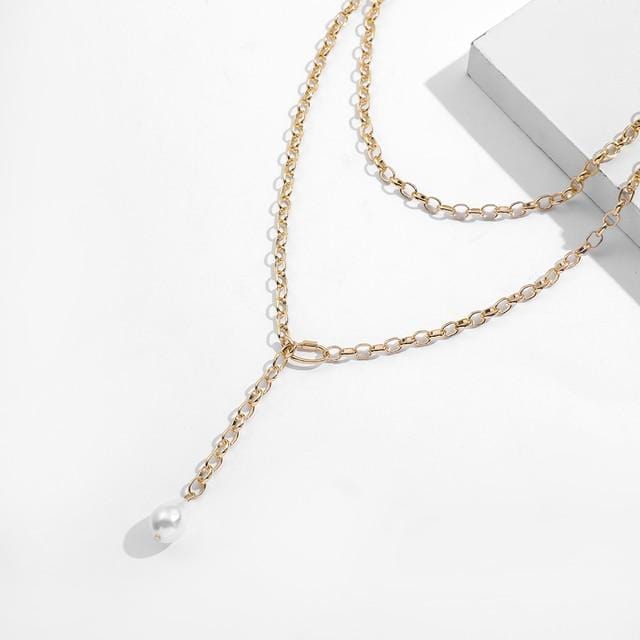 Gothic Gold Link Chain Pearl Necklaces Mixed Linked Circle Lasso Choker Necklace for Women Statement Collar Wedding Jewelry