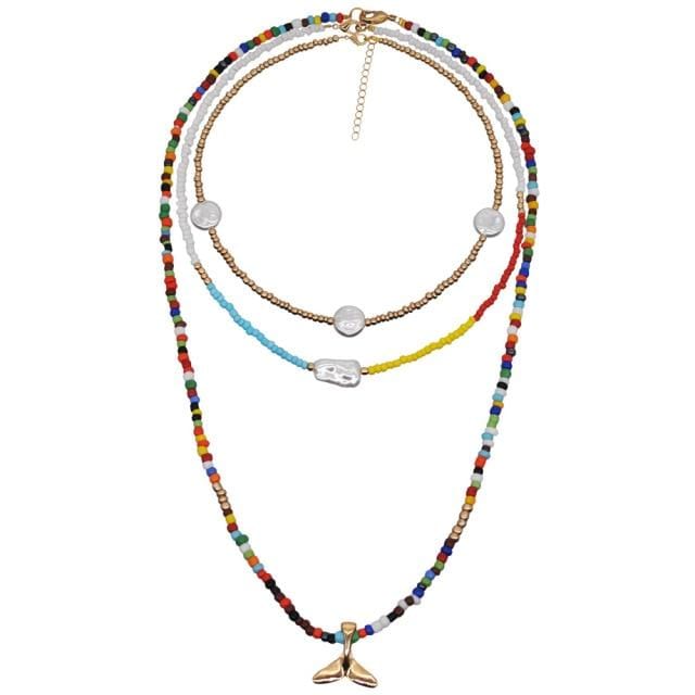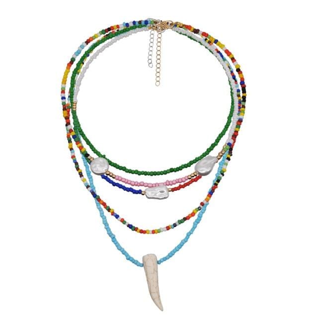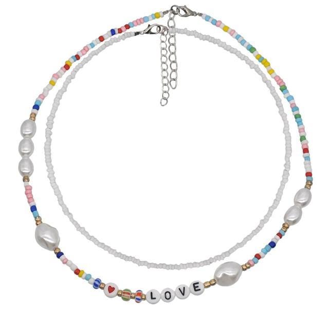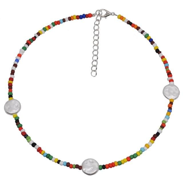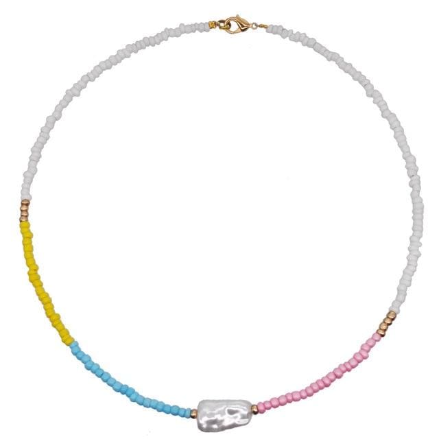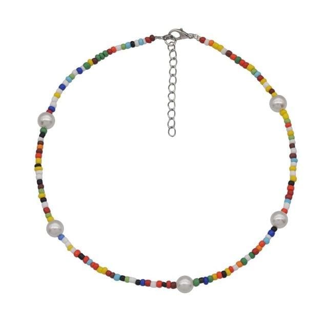 HangZhi 2020 New Bohemian Colorful Beads Weaving Handmade Baroque Simulated Pearl Necklace Clavicle Chain Choker Jewelry