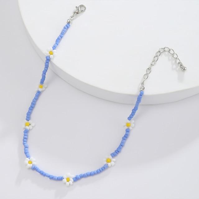 HangZhi 2020 New Summer Boho Colorful Daisy Resin Seeds Beads Handmade Collar Clavicle Choker Necklaces for Women Hot Jewelry