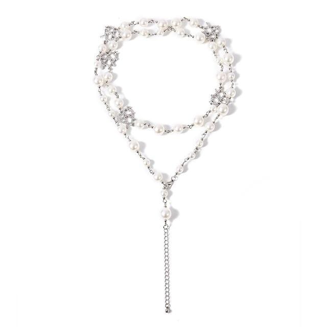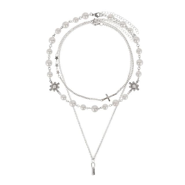 HangZhi 2020 New Trendy Multilayer Pearls Rhinestones Cross Hollow Heart Statement Long Sweater Necklace for Women Girls Jewelry