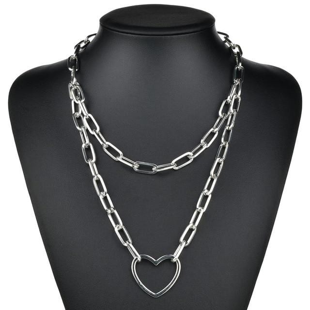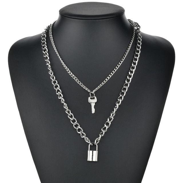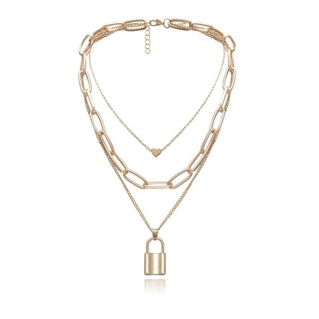 Hip Hop Multi Layers chain necklace with heart lock women/men punk rock padlock pendant necklace emo grunge Goth jewelry