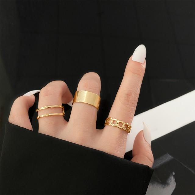 Hiphop/Rock Metal Geometry Circular Punk Rings Set Opening Index Finger Accessories Buckle Joint Tail Ring for Women Jewelry